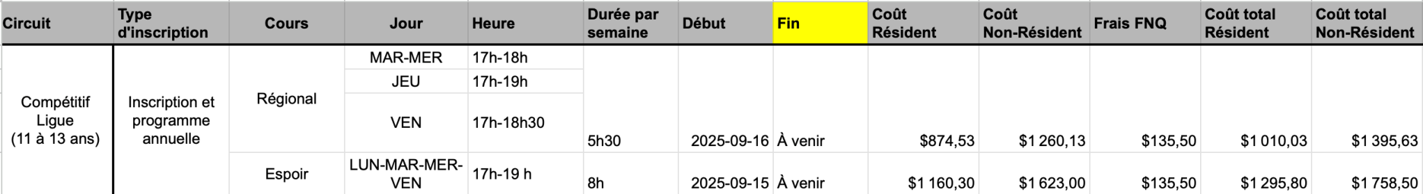 Date, horaire et frais d’inscription